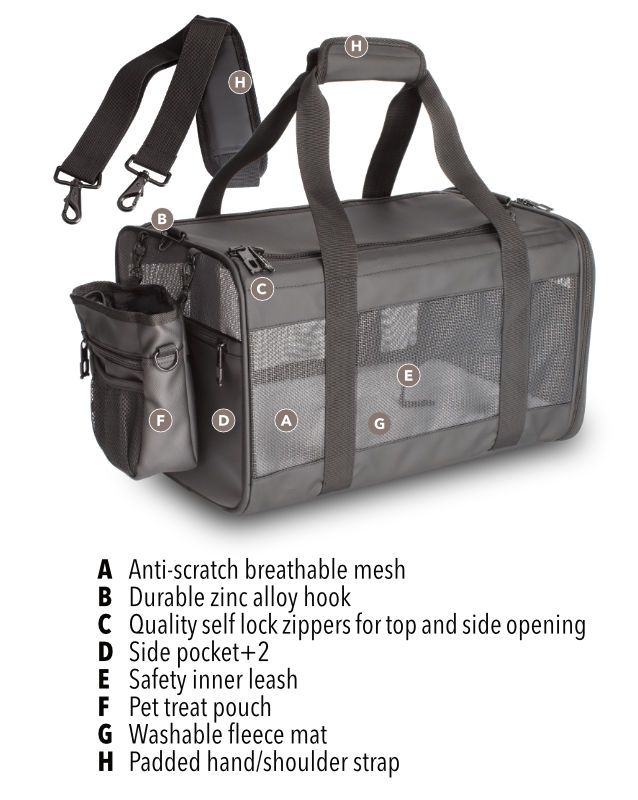 Pensamos en la seguridad de tu mascota. El transportín de mascotas de Waldseemüller está diseñado de forma que tu mascota viaje segura. Los materiales son resistentes y de primera calidad. Las asas de mano y de hombro son acolchadas, para una mator comodidad a la hora de transportar a tu mejor amigo.