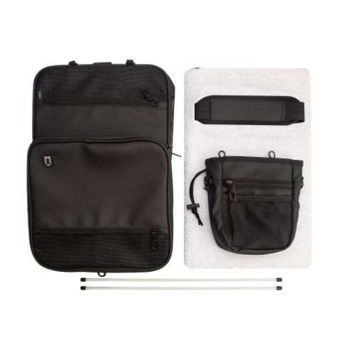 Los bolsillos laterales, te permiten llevar, tanto accesorios para tu mascota, como los tuyos propios. En el kit, se incluye una práctica bolsa de premios que se ancla en uno de los laterales.