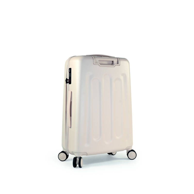 CANOE Maleta spinner mediana 24 beige, está inspirada en los viajes de montaña, y las formas de una canoa surcando grandes lagos.