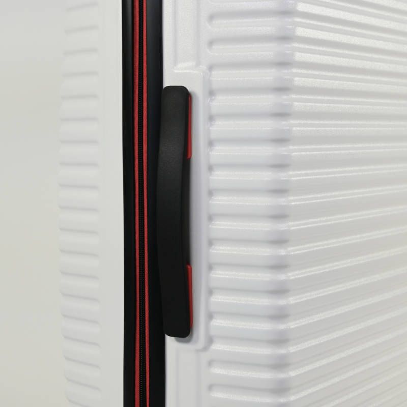 La cremallera y los detalles de los accesorios, como ruedas y asas vienen en el color rojo.