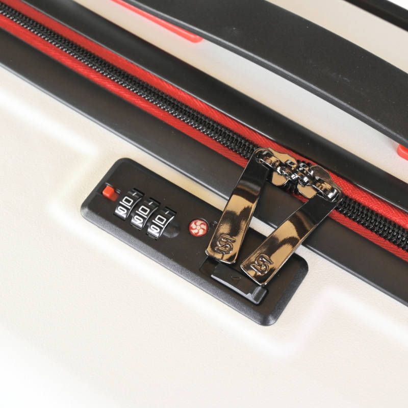 DUBAI Maleta spinner grande 28 blanca, con 4 ruedas dobles, cierre de seguridad con contraseña de 3 dígitos integrado en el cuerpo, tirador de doble tubo.
