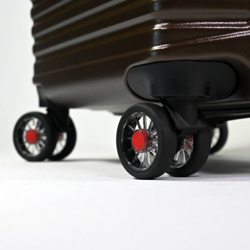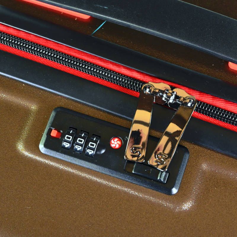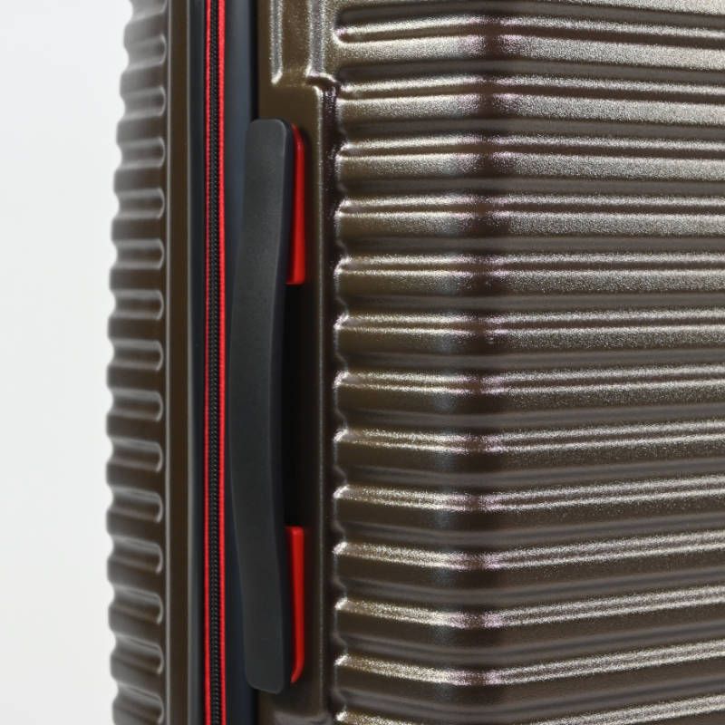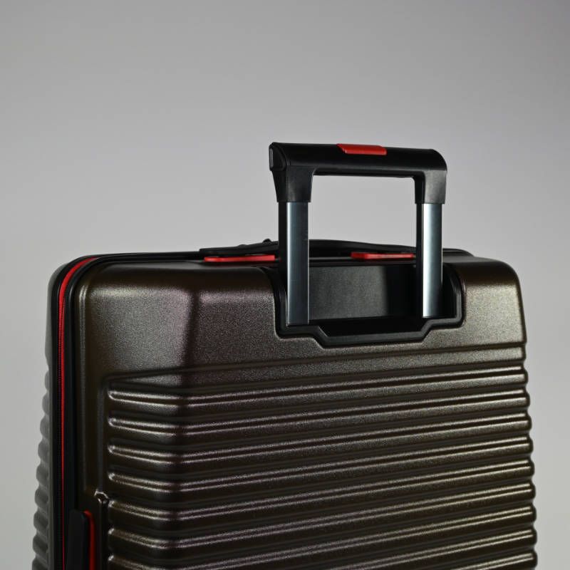 La cremallera y los detalles de los accesorios, como ruedas y asas vienen en el color rojo.