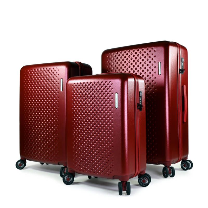 GOLF Maleta spinner Set 3 burdeos, con 4 ruedas dobles, cierre de seguridad con contraseña de 3 dígitos integrado en el cuerpo.