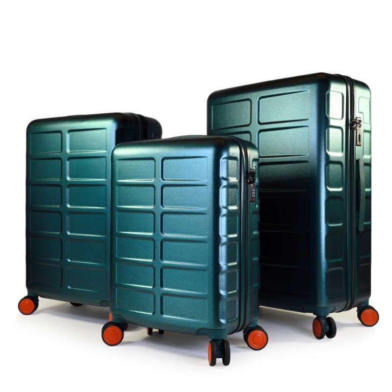 MANHATTAN Maleta spinner Set 3 verde, con 4 ruedas dobles, cierre de seguridad con contraseña de 3 dígitos integrado en el cuerpo.