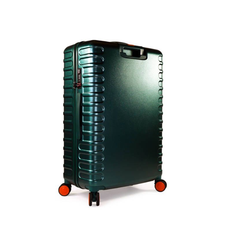 SEGOVIA Maleta spinner grande 28 verde, con 4 ruedas dobles, cierre de seguridad con contraseña de 3 dígitos integrado en el cuerpo, tirador de doble tubo.