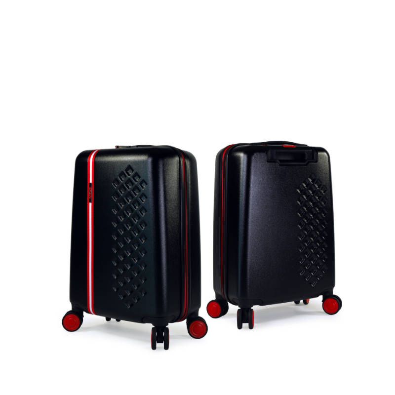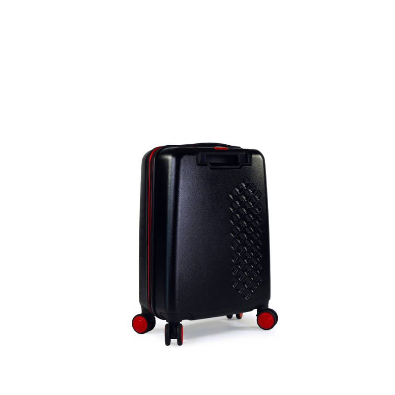 La cremallera y los detalles de los accesorios, como ruedas y asas vienen en el color secundario, rojo.